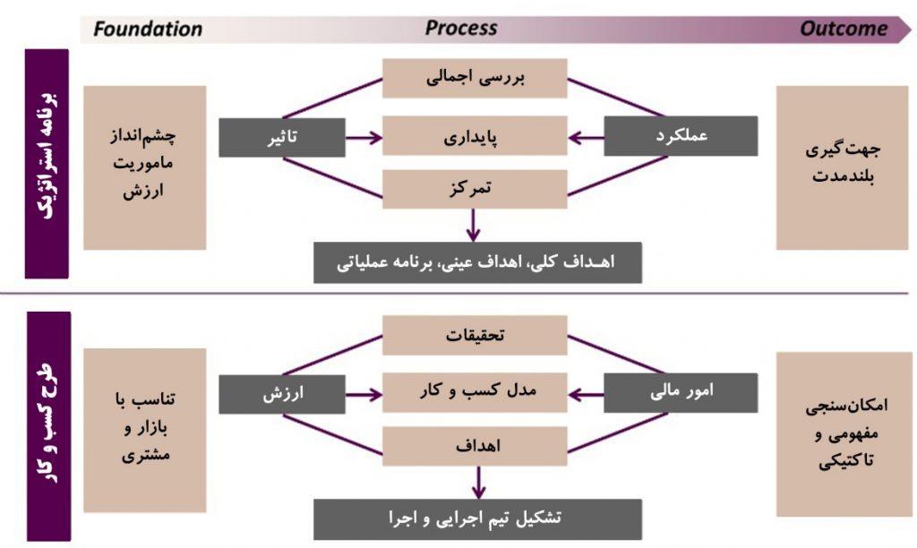 اما لازم به یادآوری است فرآیندهای برنامه‎های استراتژیک متدوال، برای یک استارتاپ می‏تواند بسیار پیچیده باشد. برای پاسخ به این نیاز و ایجاد یک ساختار ساده برای تدوین استراتژی و برنامه عملیاتی مرتبط با آن، تدوین برنامه استراتژیک یک صفحه‎ای پیشنهاد می‎شود.