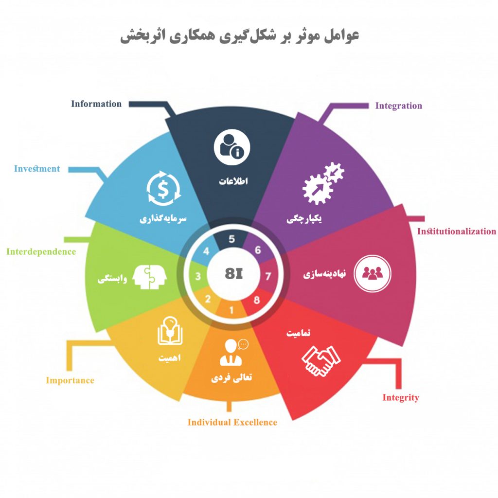 ای مسیر مشابهی را طی نمیکند. بهترین روابط سازمانی نیز، مانند ازدواج، همکاری واقعی است که جهت موثر بودن نیاز به توجه به معیارهای خاصی دارد. خانم رزابت روس کانتر، هشت عامل ( , “Eight I’s That Create Successful We’s.”) را شناسایی میکند که در موفقیت اتحادها و مشارکتها در به دست آوردن منافع مشترک موثر هستند.